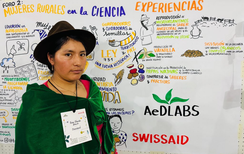En Bogotá, Swissaid Colombia organizó un encuentro clave centrado en el diálogo de saberes entre múltiples territorios y culturas. El objetivo principal fue reconocer y reflexionar sobre el papel de las mujeres rurales en la ciencia, desde un enfoque inclusivo que integró diversas voces y experiencias. Mujeres campesinas, agricultoras, indígenas, académicas y urbanas compartieron sus realidades y perspectivas, contribuyendo a la co-creación de un conocimiento consciente, comprometido con el cuidado de la Madre Tierra y de los territorios.